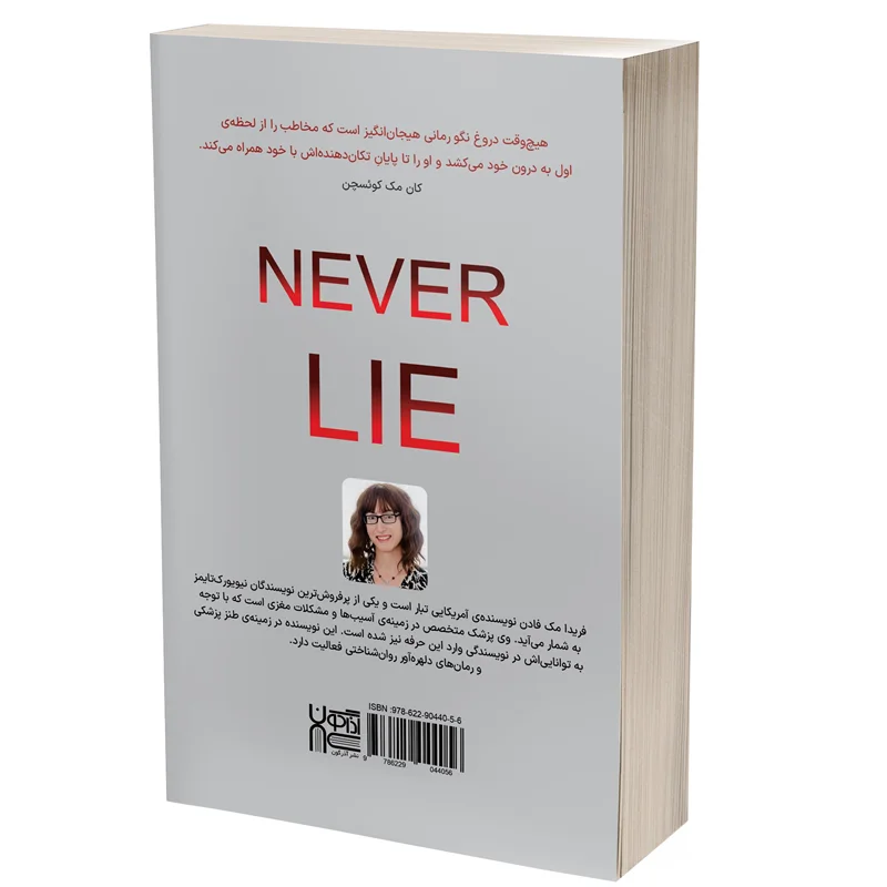 کتاب هیچوقت دروغ نگو (Never Lie) رمانی تریلر و روانشناختی از نویسندهی پرفروش نیویورکتایمز، فریدا مکفادن (Freida McFadden) است. این رمانْ داستان زنوشوهری بهنام پاتریشیا و ایتن را به تصویر میکشد که در ششمین ماه ازدواج خود هستند که بهدنبال خانهی رویاهای خود و به پیشنهاد مشاور املاکشان، راهی جاده شدهاند. در جاده برف سنگنی میبارد و سیگنال مکانیاب آنها از کار افتاده است. تریشیا اصرار دارد برگردند و قید بازدید از خانه را بزنند، اما ایتن تا کارش را به انجام نرساند، دست بردار نیست. بالاخره خانه را پیدا میکنند، یکی از چراغهای آن بهطرز مشکوکی روشن است، اما کسی در خانه نیست و هیچ ماشینی در اطراف خانه دیده نمیشود. تریشیا با دیدن خانه حس بدی پیدا میکند. او احساس میکند که اتفاق وحشتناکی در این خانه رخ داده است.